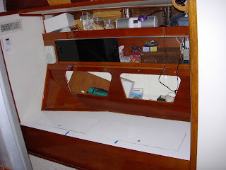 Notice how they fitted the flooring around the mast perfectly. In the top part of the picture, the flooring has epoxy applied (which is why it is shiny). The part at the bottom of the picture is raw wood.